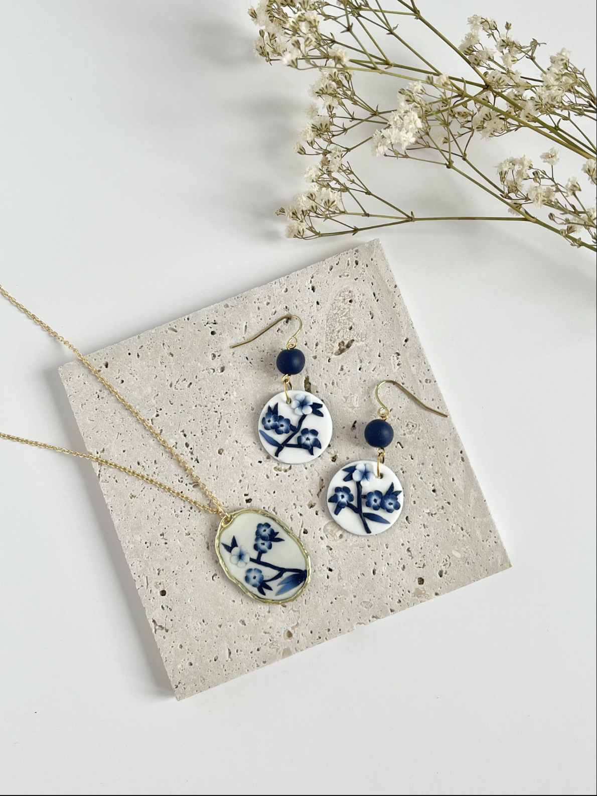 Bringing together the Blue China No. 2 earrings and Blue China Necklace No. 3 (worth £64 if bought separately)
